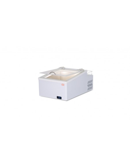 Espositore gelato orizzontale a refrigerazione statica con apertura verso l’alto e piedistallo con ruote come accessorio opzionale